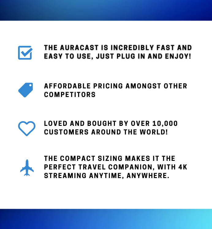 The AuraCast Projector fills your wall and the whole room, with movie theatre energy. Why Settle for less? Order now!